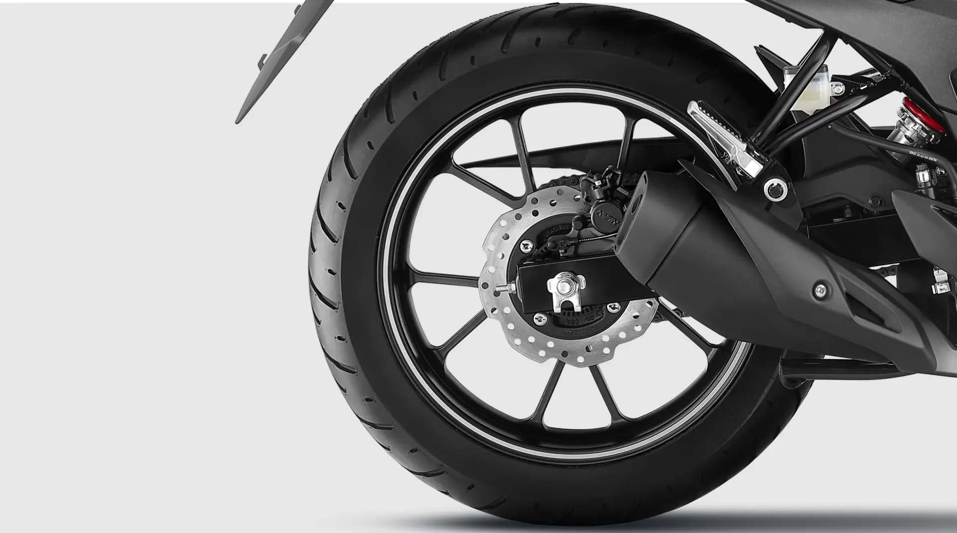 El sistema de frenos cuenta con disco delantero de 256 mm y disco trasero de 220 mm, con pinzas Nissin que garantizan una respuesta precisa. El ABS de doble canal optimiza la seguridad durante el frenado, ayudando a mantener la estabilidad y evitando el bloqueo de las ruedas.