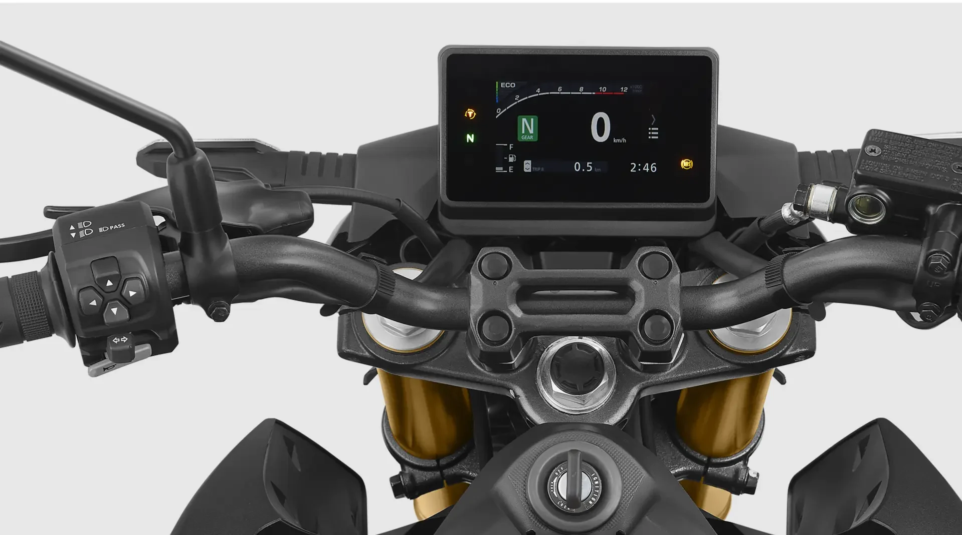 El tablero TFT ofrece una visualización clara y moderna de toda la información de conducción, facilitando la lectura en cualquier condición de luz.