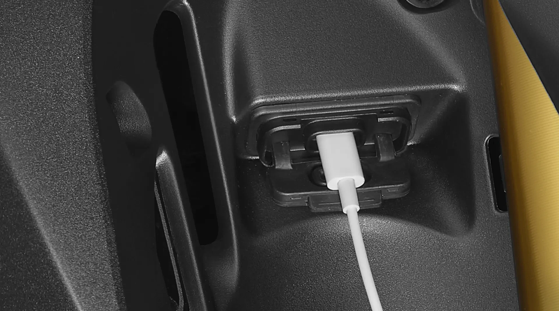 El puerto USB-C permite mantener dispositivos cargados durante el uso diario, sumando practicidad y conectividad para la movilidad urbana.