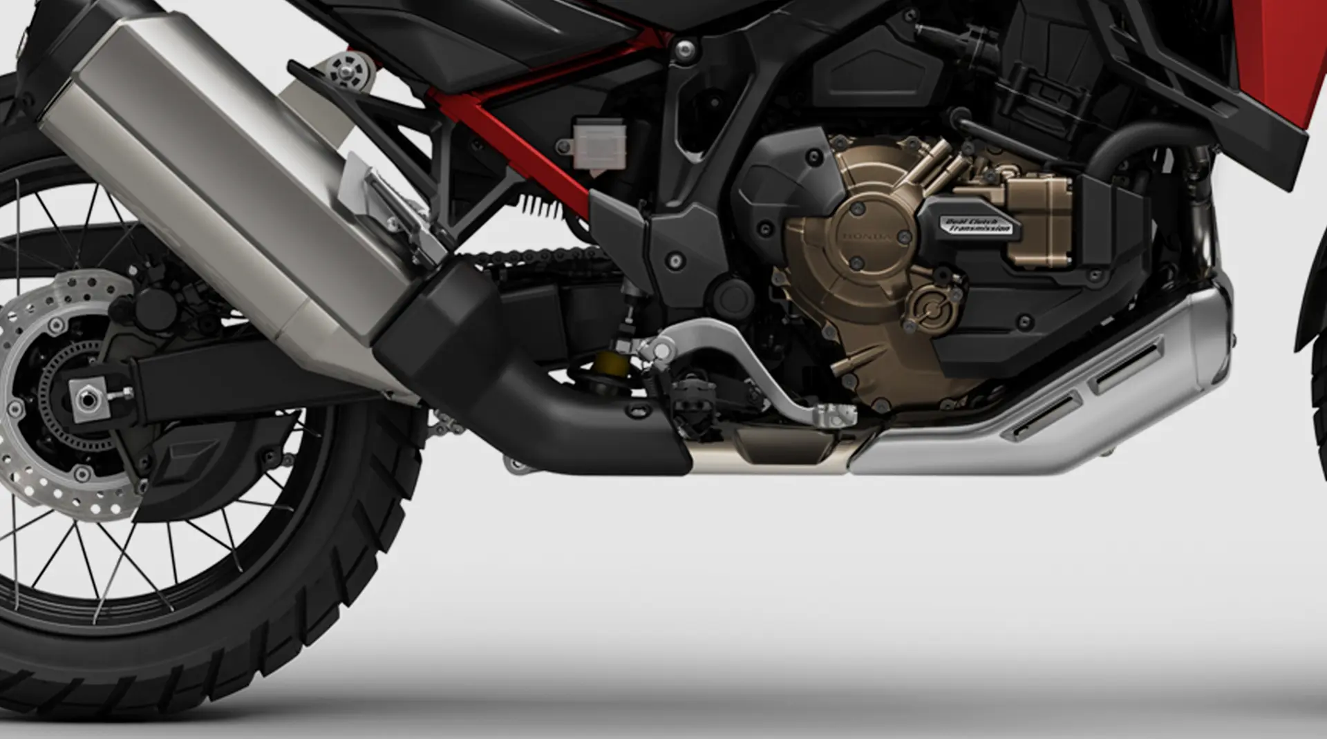 La transmisión por cadena, de 6 velocidades, se ofrece en opciones de cambio manual y automático de doble embrague (DCT), esta última con una función “G”, seleccionable en la pantalla TFT, para maximizar la tracción en condiciones off-road.
