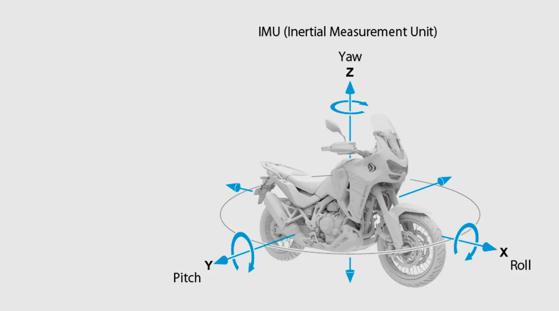 La CRF 1100L Africa Twin está equipada con una Unidad de Medición Inercial (IMU) de 6 ejes que monitorea en tiempo real las condiciones del vehículo de manera precisa, generando información para diversas funcionalidades, tales como el Quick Shifter, la transmisión DCT, el control de wheelie, el ABS en curvas y el HSTC (Honda Selectable Torque Control), entre otras.