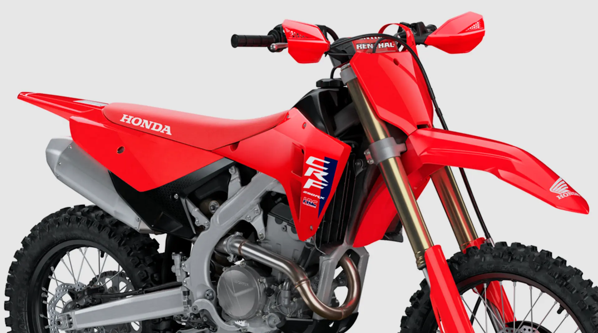 Desde los cubrepuños de serie, pasando por las gráficas “en molde” de máxima durabilidad, hasta los neumáticos Dunlop Geomax pensados para este tipo de uso, la nueva CRF250RX está específicamente diseñada para el enduro más exigente, desde subidas difíciles hasta terrenos técnicos intensos.
