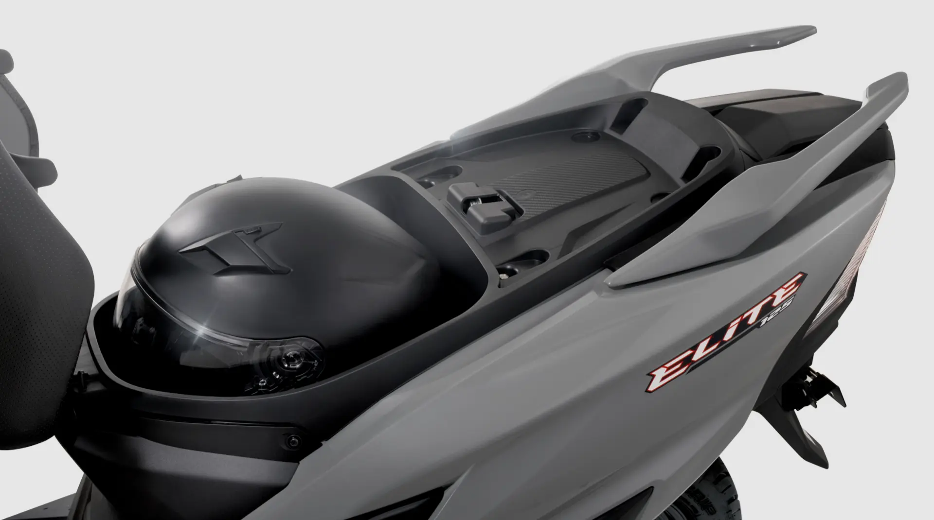 La Elite 125 se renueva con carenados completamente nuevos que preservan su espíritu deportivo característico. Cuenta con amplio espacio de guardado bajo el asiento.