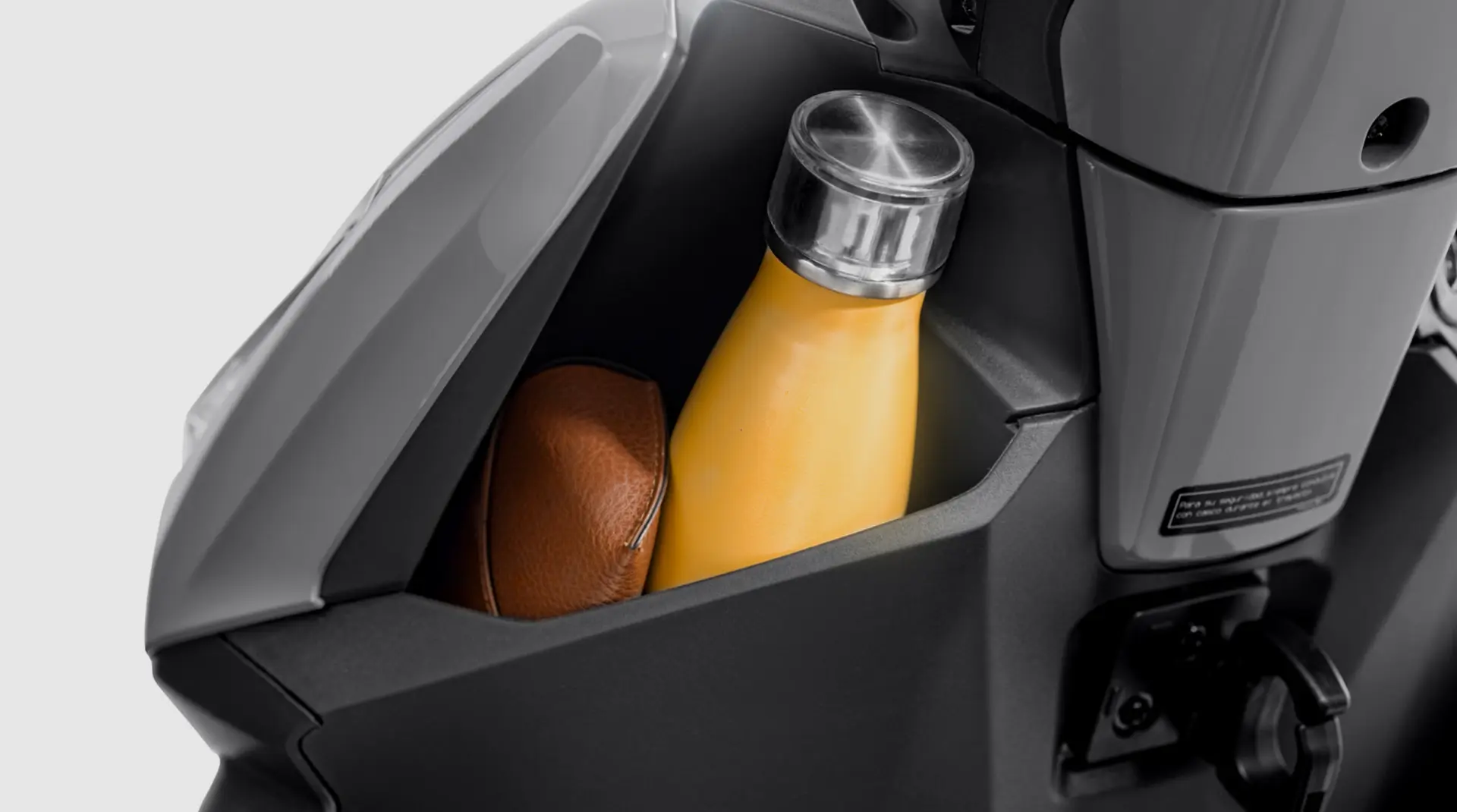 La nueva Elite 125 cuenta también con un portaobjetos delantero para llevar pequeños artículos personales.