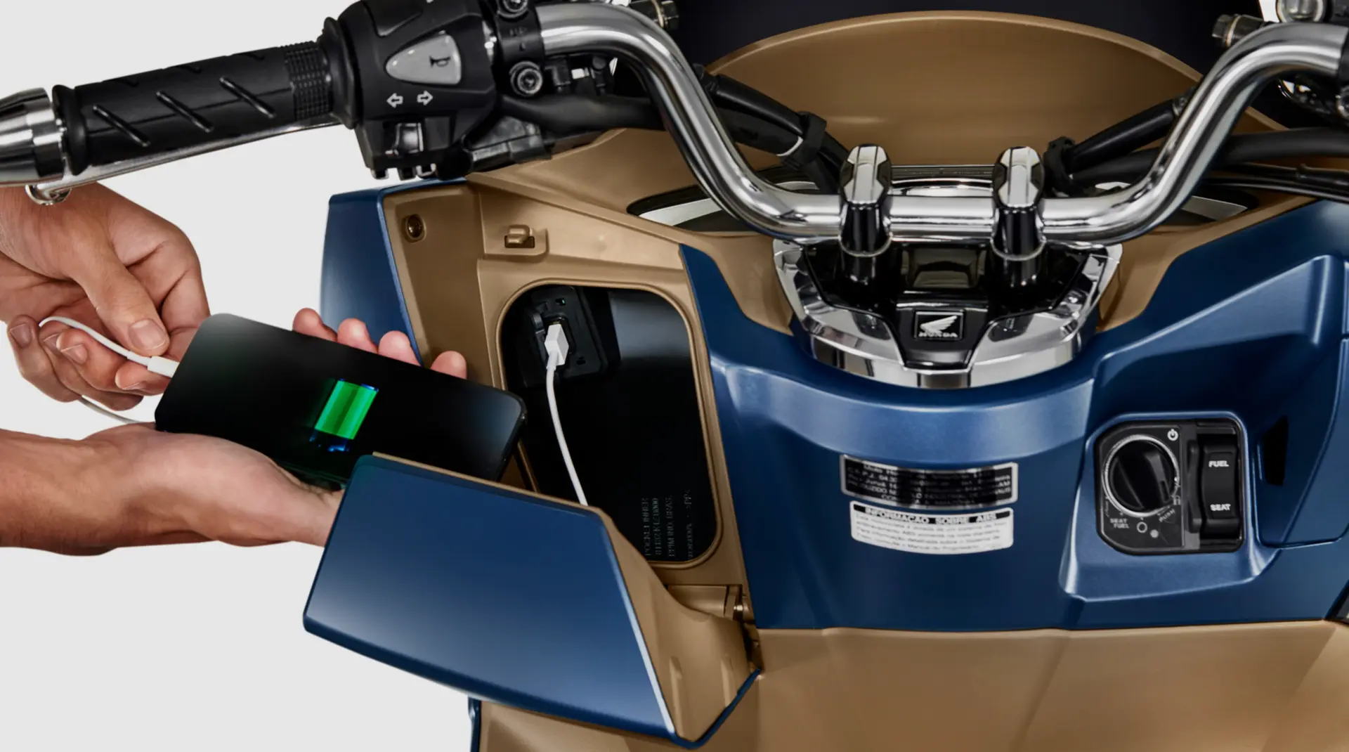 El nuevo diseño del chasis garantiza una posición de manejo aún más confortable y relajada que la de su predecesora, haciendo de la nueva PCX 160 la opción ideal para tus traslados diarios. Con una capacidad de 30 litros, el portaobjetos brinda ahora más espacio para guardar todo lo que necesites.