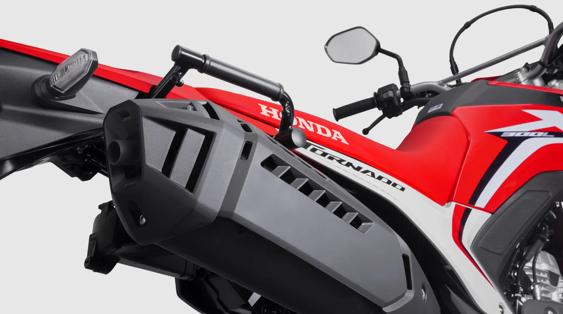 La nueva XR300L Tornado incorpora iluminación Full LED tanto en el sector delantero como en el posterior. Esto no solo garantiza una excelente visibilidad, sino que contribuye a la seguridad, al permitirle al piloto ver y ser visto. Además, el nuevo diseño de las luces y de los carenados que las rodean, sumado a la tecnología LED, refuerzan el look aventurero y sofisticado de la motocicleta.