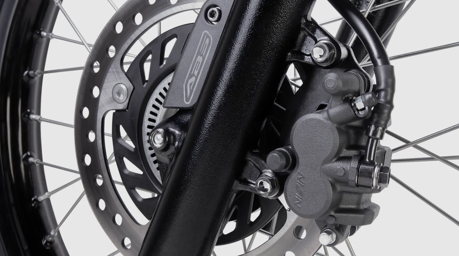 Tanto el disco de freno delantero (256mm) como el disco trasero (220mm) son accionados por pinzas Nissin, que actúan con eficiencia y precisión al momento de frenar. El ABS de doble canal garantiza la máxima seguridad en el frenado, impidiendo el bloqueo de las ruedas.
