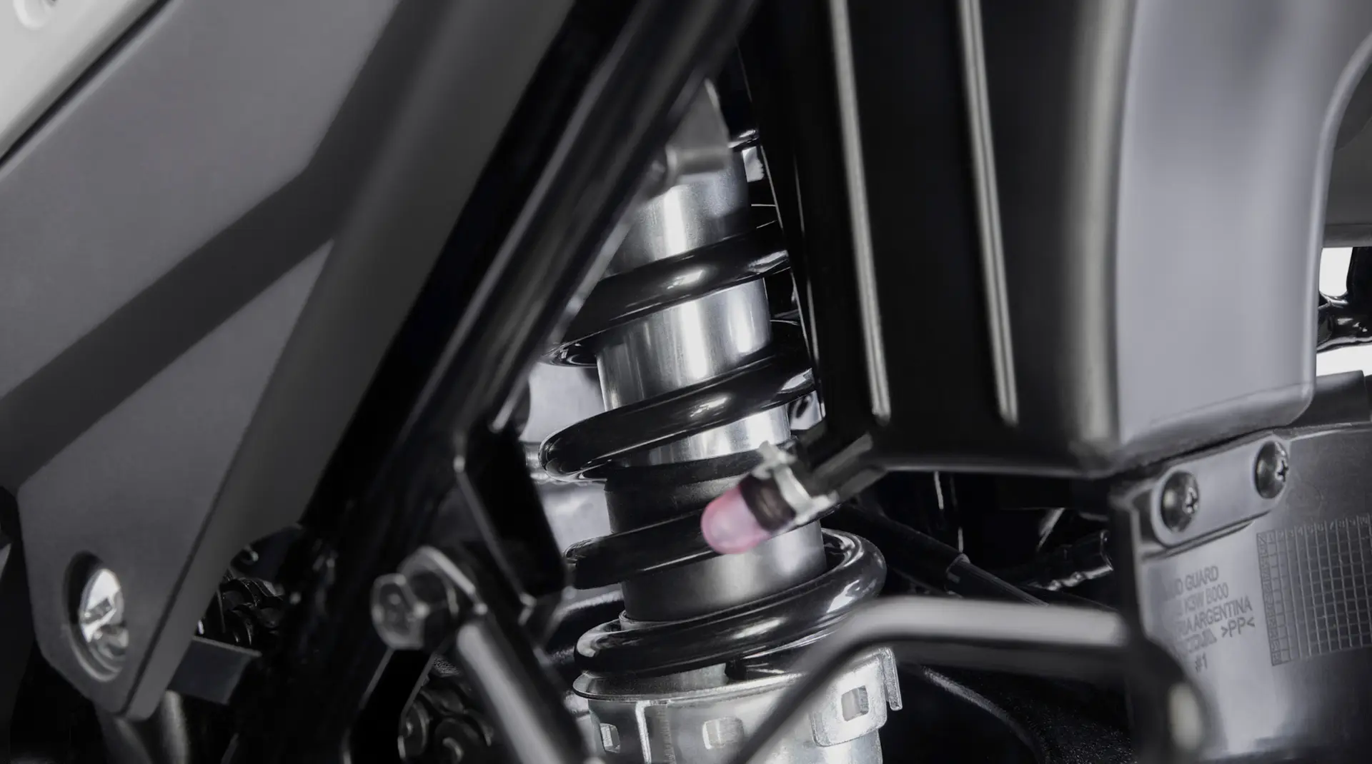 Fabricadas con componentes Showa de alta calidad y durabilidad, las horquillas delanteras de 221 mm de recorrido y el monoshock trasero Pro-Link ajustable en 7 posiciones otorgan confort y estabilidad en las más variadas condiciones de conducción.